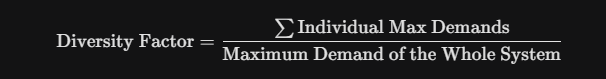 In a large facility, not every machine runs at full capacity at the exact same second. We apply a Diversity Factor to account for this.