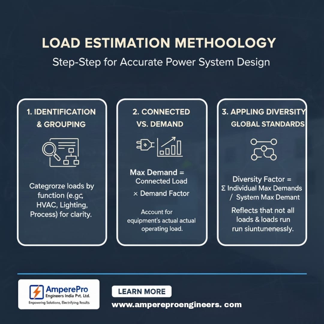 Learn the professional methodology for electrical load estimation. Master diversity factors, demand factors, and international standards (IEC/IEEE)